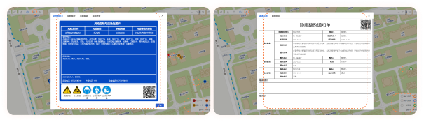 地圖支持低分衛星地圖、街區圖的展示,支持兩大業務實體:風險、隱患,并支持詳細查看。便于管理者和用戶快速查看本單位的安全狀況,利于安全生產決策管理和實踐。