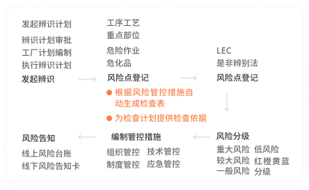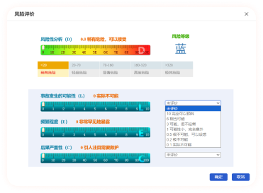 全面開展安全風險識別,全方位、全過程辨識生產工藝、人員行為和管理體系等方面存在的風險點,評估風險等級并逐一登記自動生成詳實的危險源辨識與控制。支持構建風險數據庫,快速指導用戶辨識風險,排查隱患,快速累計的數據會使系統越來越好用。